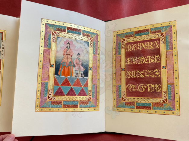 Un an pour réaliser un manuscrit de toute pièce, de la première idée à la reliure. La semaine dernière, je vous présentais la manière dont j’avais réalisé le troisième chapitre de ce manuscrit dans un style mozarabe. Aujourd’hui, je vous parle de l’étape suivante : celle du quatrième chapitre, consacré aux Terres Varrodenes. Pour rappel, mon manuscrit a pour thème un monde que j’ai imaginé. J’ai en effet décidé d’utiliser pour sa réalisation un roman de Fantasy que j’écris. Et oui, car en plus d’être enlumineresse, je suis aussi autrice ! Mon cahier des charges est le suivant : choisir un ou deux styles de l’enluminure occidentale, calligraphier un texte court dans l’écriture du.des style.s choisi.s, inclure au moins quatre pleines pages. Le but de mon manuscrit est donc de présenter les divinités que j’ai inventées pour mon histoire, avec leurs spécificités propres, comme on l’aurait fait au Moyen-Âge. En théorie…